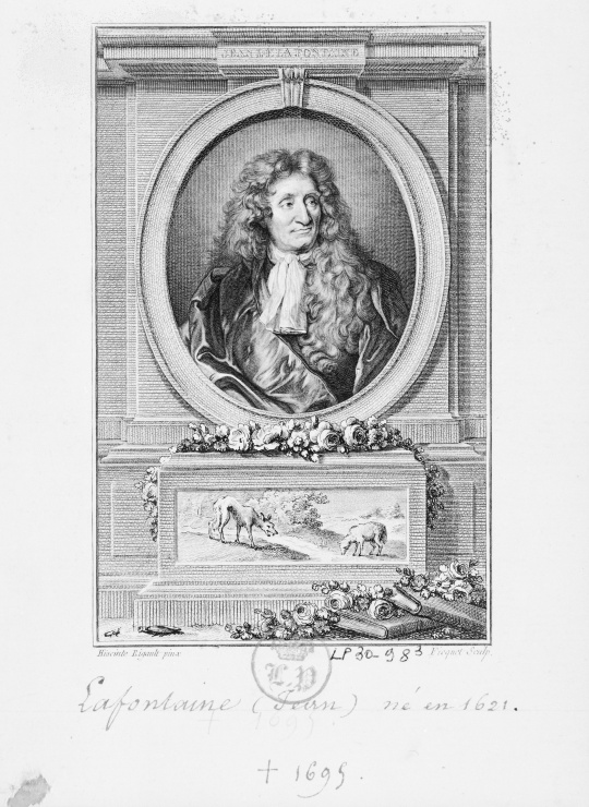 Jean de La Fontaine (1621-1695), écrivain et représentation de la fable "le loup et l'agneau"