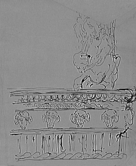 Carton 84-4. Etude d'architecture sculptée pour "Les Prétendants"