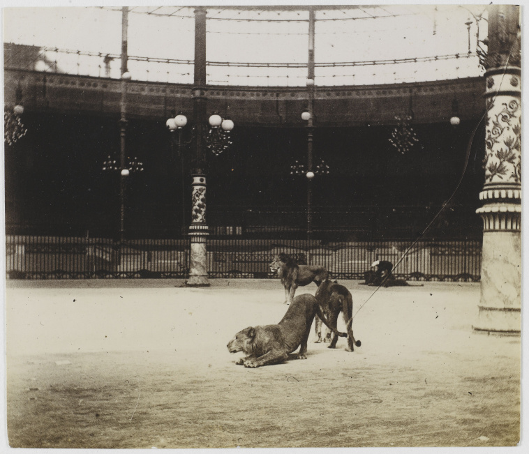Hippodrome de l'Alma, répétition de la pantomime Néron, les lions déambulant