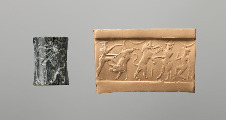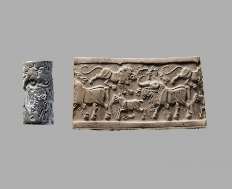 Sceau-cylindre : aurochs suivi d'un veau