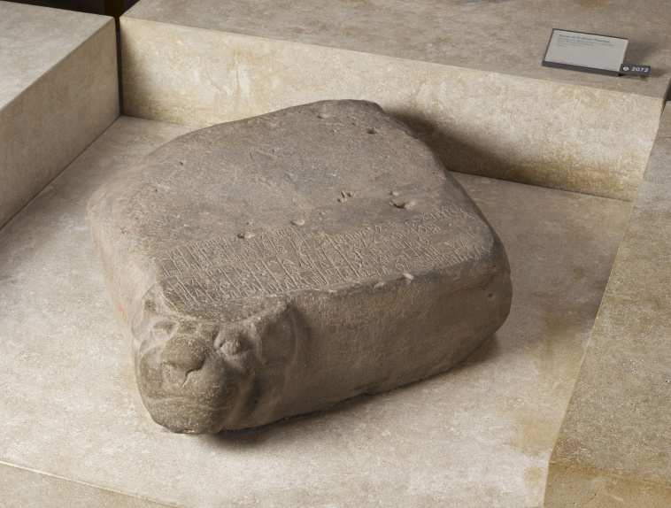 Table ornée d'une tête de lion avec inscription en élamite et en akkadien