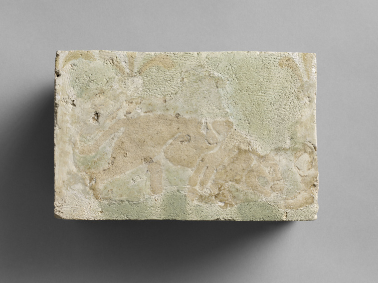 Brique décorée d'une lionne passant