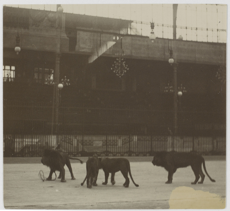 Hippodrome de l'Alma, répétition de la pantomime Néron, les lions déambulant