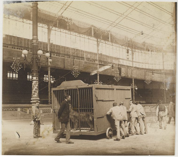 Hippodrome de l'Alma, répétition de la pantomime Néron, le transport de la cage aux fauves