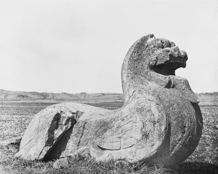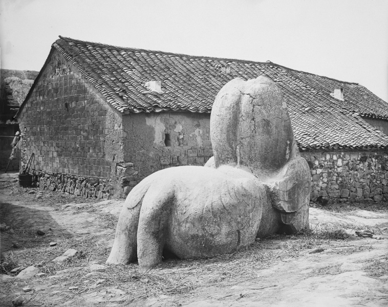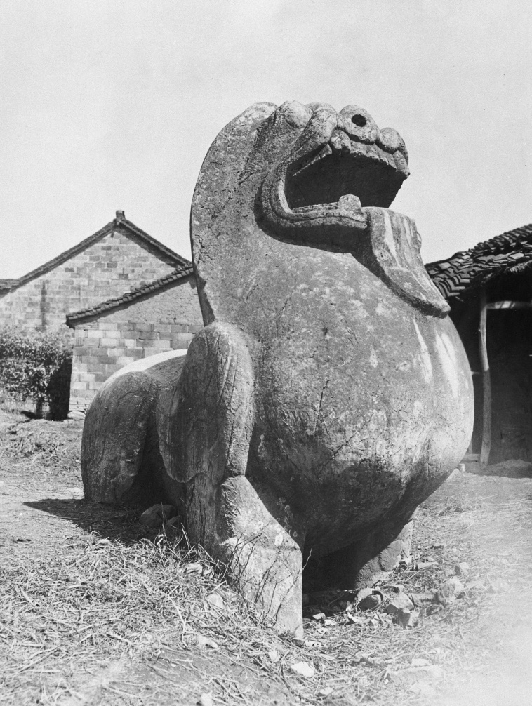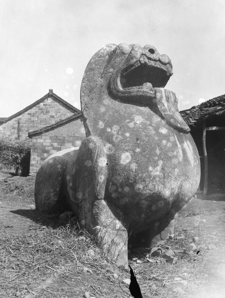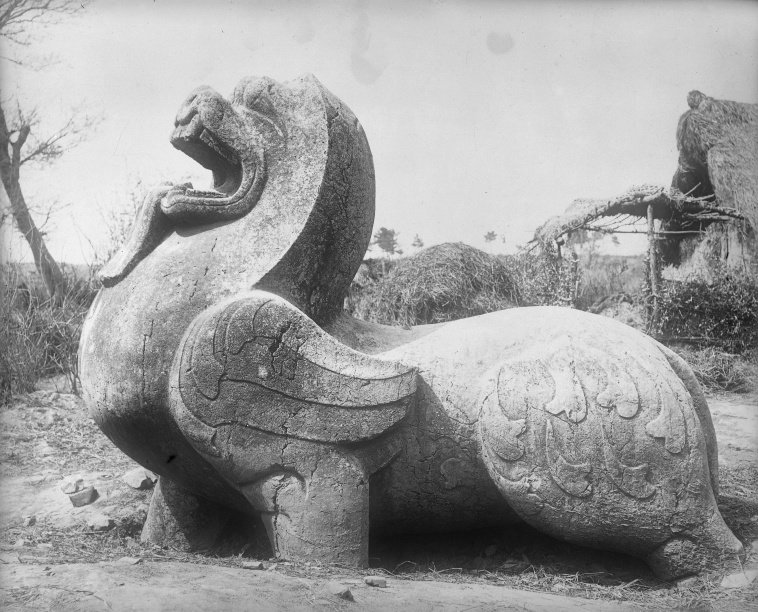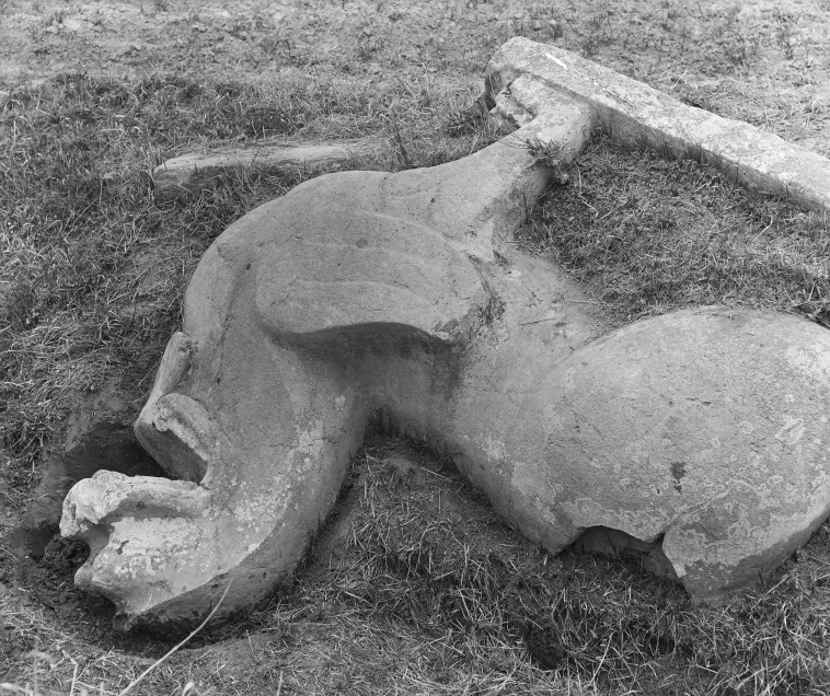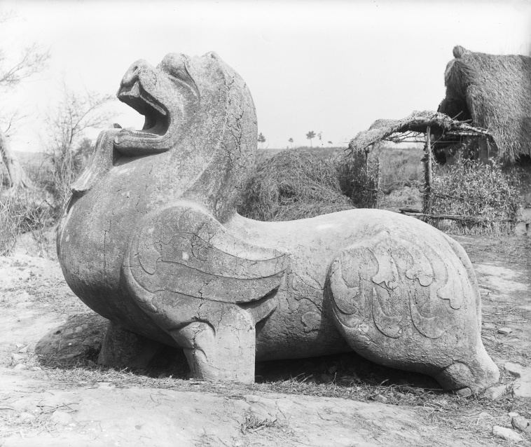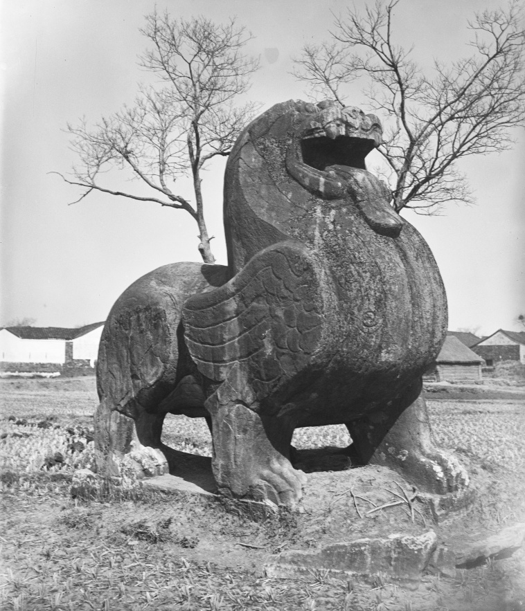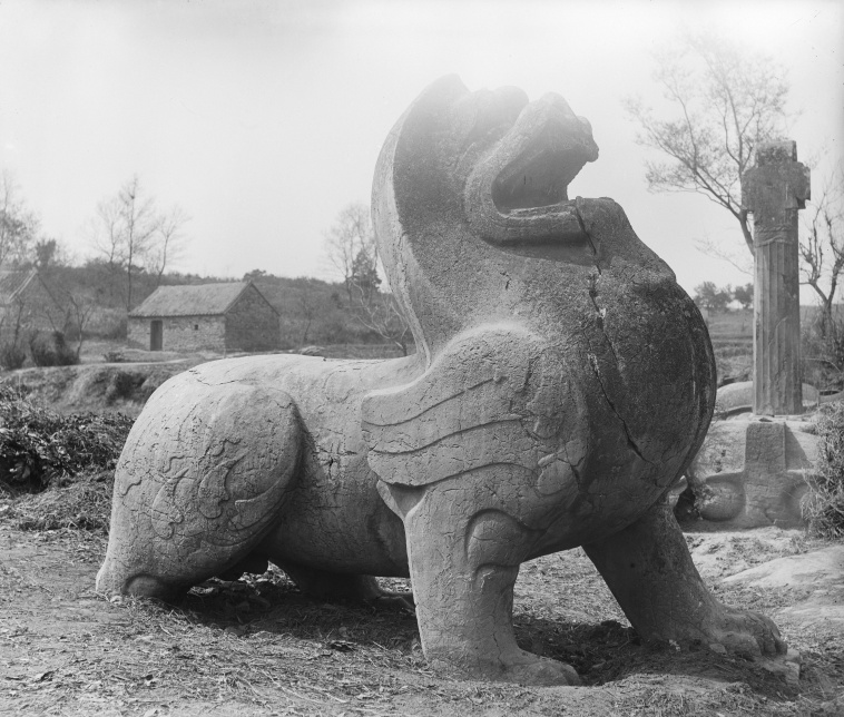 Région de Nankin, allée funéraire de Xiao Hong (mort en 527 ap. J.-C.), lion ailé renversé