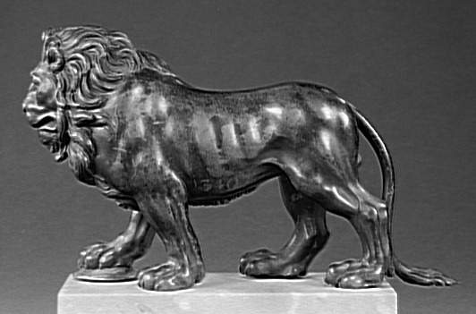 Poids en forme de lion couché avec inscription phénicienne sur la base