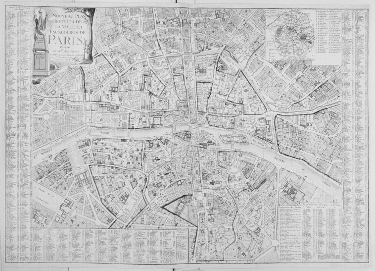 Nouveau plan de Paris et de ses faubourgs, où sont marqués tous les quartiers, toutes les rues et cul-de-sacs, toutes les églises et communautés de cette ville