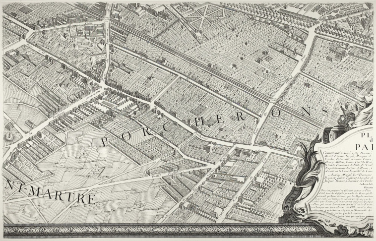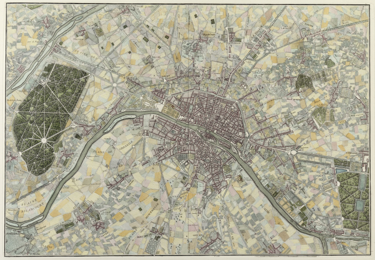 Plan de Paris divisé en seize quartiers en exécution de l'Ordonnance du Bureau de la Ville du 24 février 1744