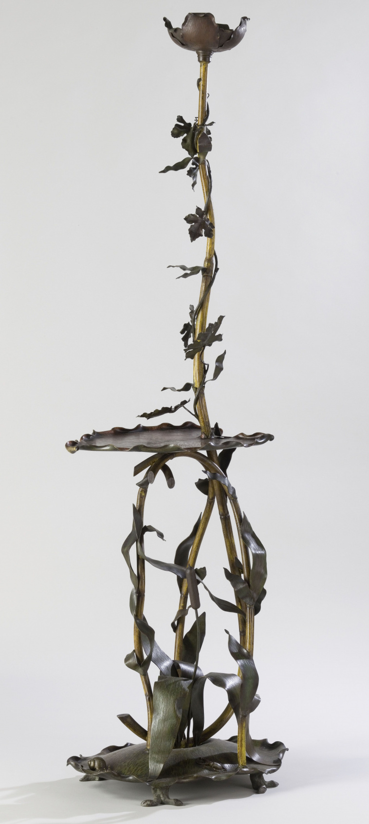 Lampadaire sur pied avec tablette à décor de plantes aquatiques, escargots et capricorne