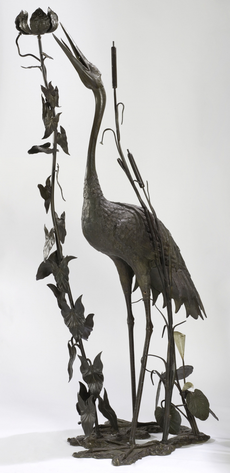 Lampadaire sur pied, Grue et roseaux