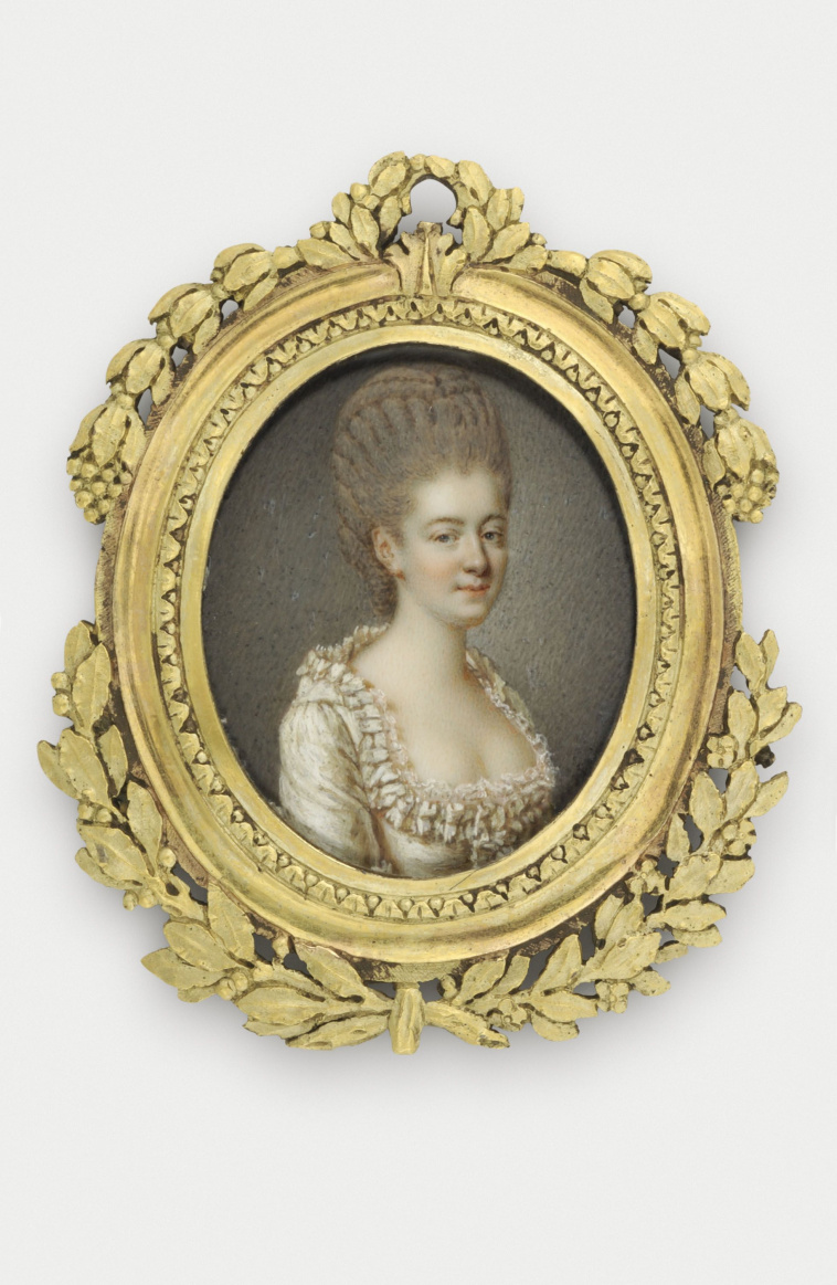Portrait de jeune femme, en buste, vêtue d'une robe blanche