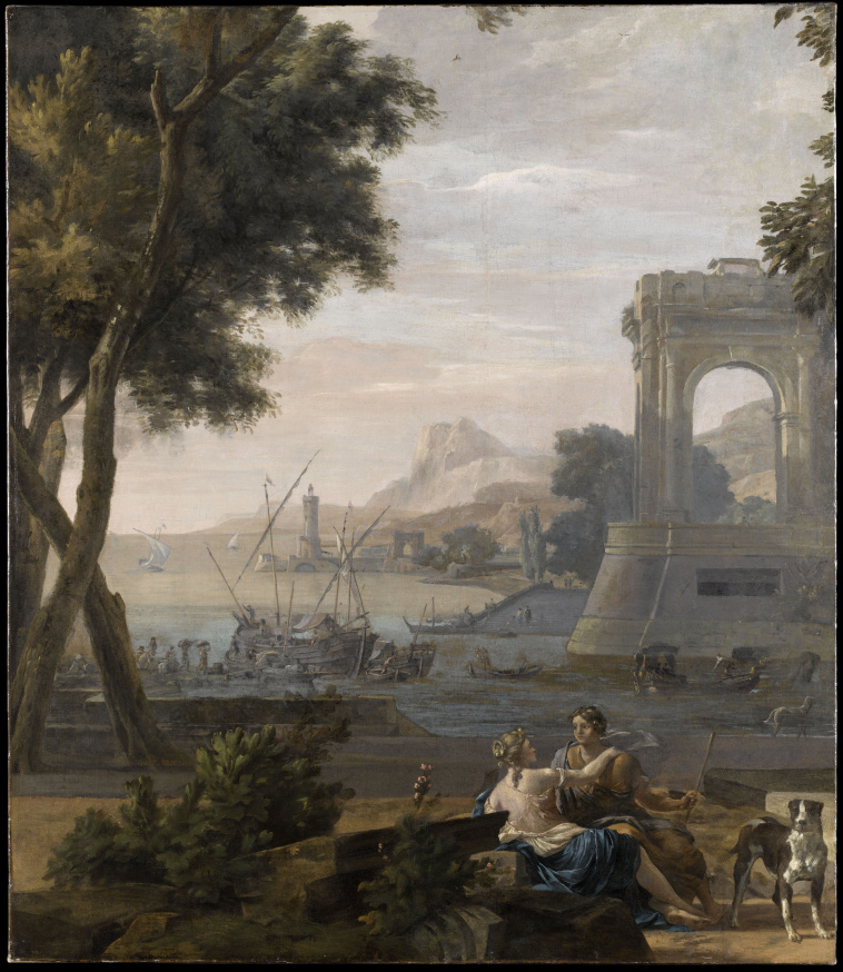 Hercule sauvant Hésione des attaques d'un monstre marin ; grisaille